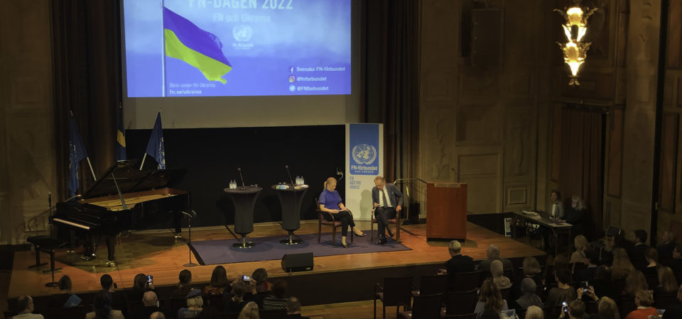 När Runö folkhögskola uppmärksammade FN-dagen började det med en samling i Grünewaldsalen i Konserthuset. FN-förbundet hade skapat en fin inramning, med tal av utrikesminister Tobias Billström, samtal med Jan Eliasson och flera inslag med musik och tal om FN:s arbete för fred och demokrati. Fokus låg på situationen i Ukraina.